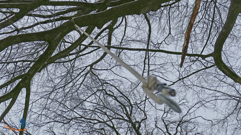 Wir verlassen Syke über die südlich der Stadt gelegenen Hügel und laufen auf Ramminghausen zu, das eigentlich nur aus ein paar Häusern besteht. In einem Wäldchen hängt seit Jahren ein Schaukelseil, mal mit, mal ohne Sitzteller, das bei unseren Enkeln immer sehr beliebt ist, wenn wir dort vorbei radeln.