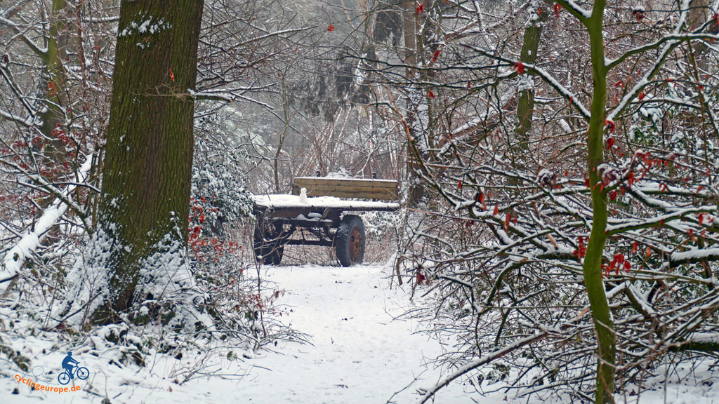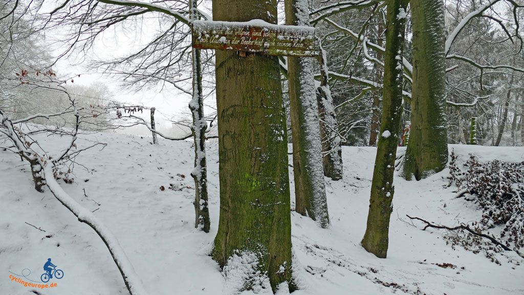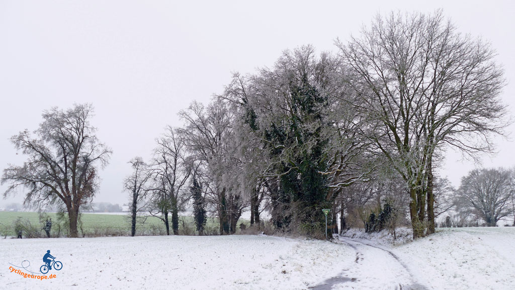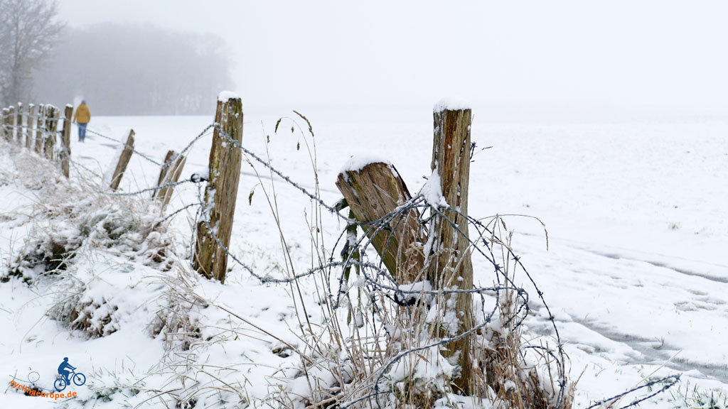 Heute starten wir mal wieder von Zuhause aus. Über die Straße und ein Stückchen hügelan, schon sind wir in der freien Natur. Sofern man bei der uns umgebenden Kulturlandschaft von 'frei' und 'Natur' sprechen kann. Pünktlich mit Jahresbeginn hat Schneefall eingesetzt und die Landschaft verwandelt, so dass wir eine wunderschöne, erste Winterwanderung vor uns haben, auch wenn die Sonne sich an diesem Tag eher bedeckt hält.