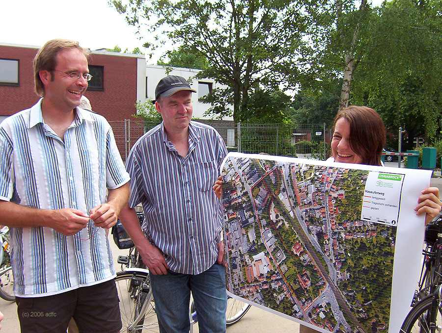 Oh wie peinlich, Herr GriesertDie beiden geführten Radtouren des ADFC vom Rathaus Bissendorf und vom Theatervorplatz in Osnabrück brachten zahlreiche Besucher zu der Eröffnungsfeier. Allein aus Osnabrück waren es 60 Mitfahrer. Der ADFC begleitet seit Jahren die Entwicklung des HUW kritisch und konstruktiv.
