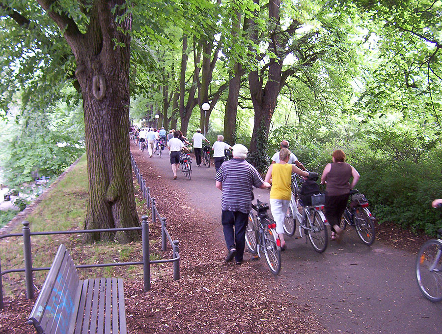 - Ab Schillerstraße geht es nur für Fußgänger weiter. Radfahrer müssen mit der zeitweise stark befahrenen Möserstraße vorlieb nehmen.