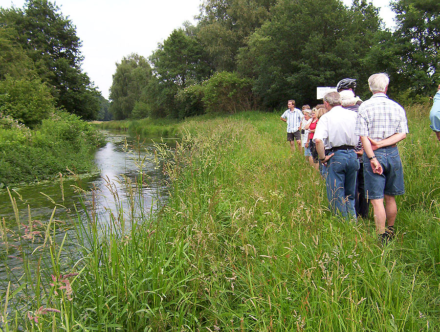 Das bringt uns zu einer wichtigen Frage: Wie soll der Haseuferweg einmal weiter geführt werden Richtung Osten? Bisher entfernt sich die Wegeführung von der Hase. Erst in Halle begegnen wir dem Flüsschen wieder, wenn wir es dort überqueren. Wünschenswert wäre es, wenn der Haseuferweg uns die Natur an der Hase näherbringen würde. Man könnte den Fluss und seine Bewohner stärker erleben, erfahren. Neue Lernorte wären denkbar.