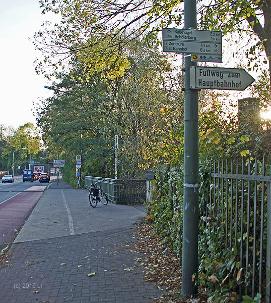 So bleibt ihm nichts weiter übrig, als der Wegweisung in das Zentrum zu folgen. Vielleicht will er aber gar nicht dorthin, sondern nur die Stadt auf möglichst ruhigen Wegen durchqueren, weil sein Ziel ganz woanders liegt?