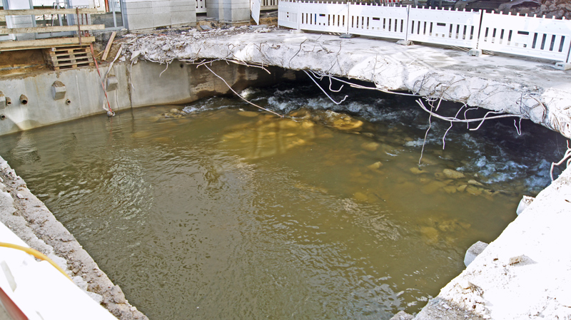 Das Hase-Hochwasser war abgelaufen, die Trogstrecke trocken, die Ampel aus. Doch leider war die Unterführung kurz vor der Schellenbergbrücke weiterhin überflutet und nicht passierbar.
