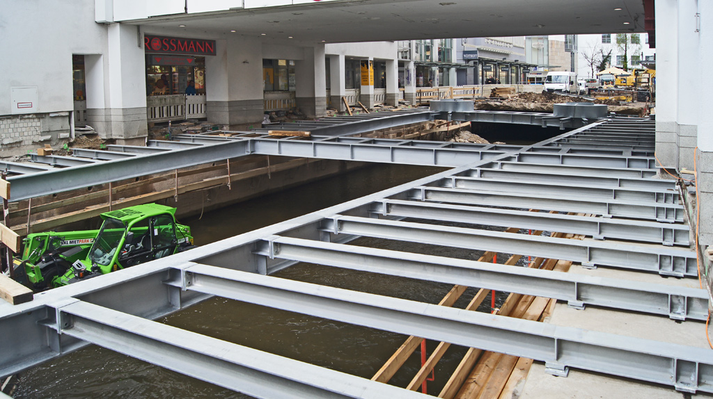 Am 11. September wird der erste Innenstadt-Abschnitt als Verbindung von der Neuen Mühle an der Heinrich-Heine-Straße bis zur Schlagvorderstraße eröffnet: Länge 215 Meter, Kosten 670.000 Euro.