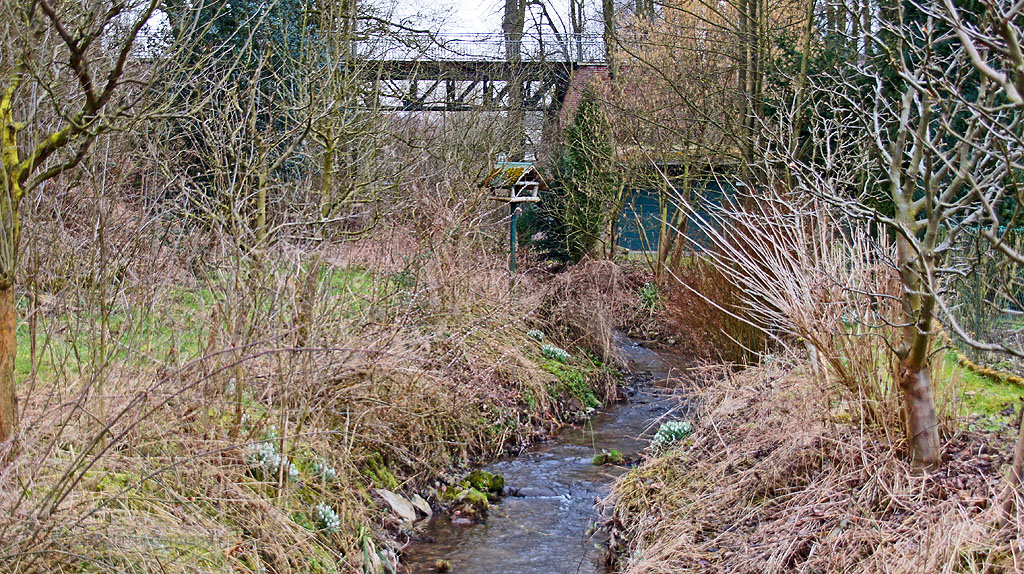 Diese kurze Tour führt vom Bahnhof Bünde über das Engeraner Kreisbahnmuseum nach Dornberg (Bielefeld) und weiter nach Werther auf den Spuren und Strecken der Bielefelder Kreisbahn. Hier ein Blick auf die alte Brücke von 1925 über den Taleinschnitt bei Pödinghausen.