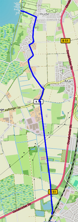 In Lemförde hält stündlich der Regionalexpress von Bremen oder Osnabrück. Vom Bahnhof erreicht man den Dümmer mit dem Fahrrad in etwa 15 Minuten (4,5 km), Strecke siehe Karte und Track rechts. | Autofahrer ereichen Hüde über die Bundesstraße 51.