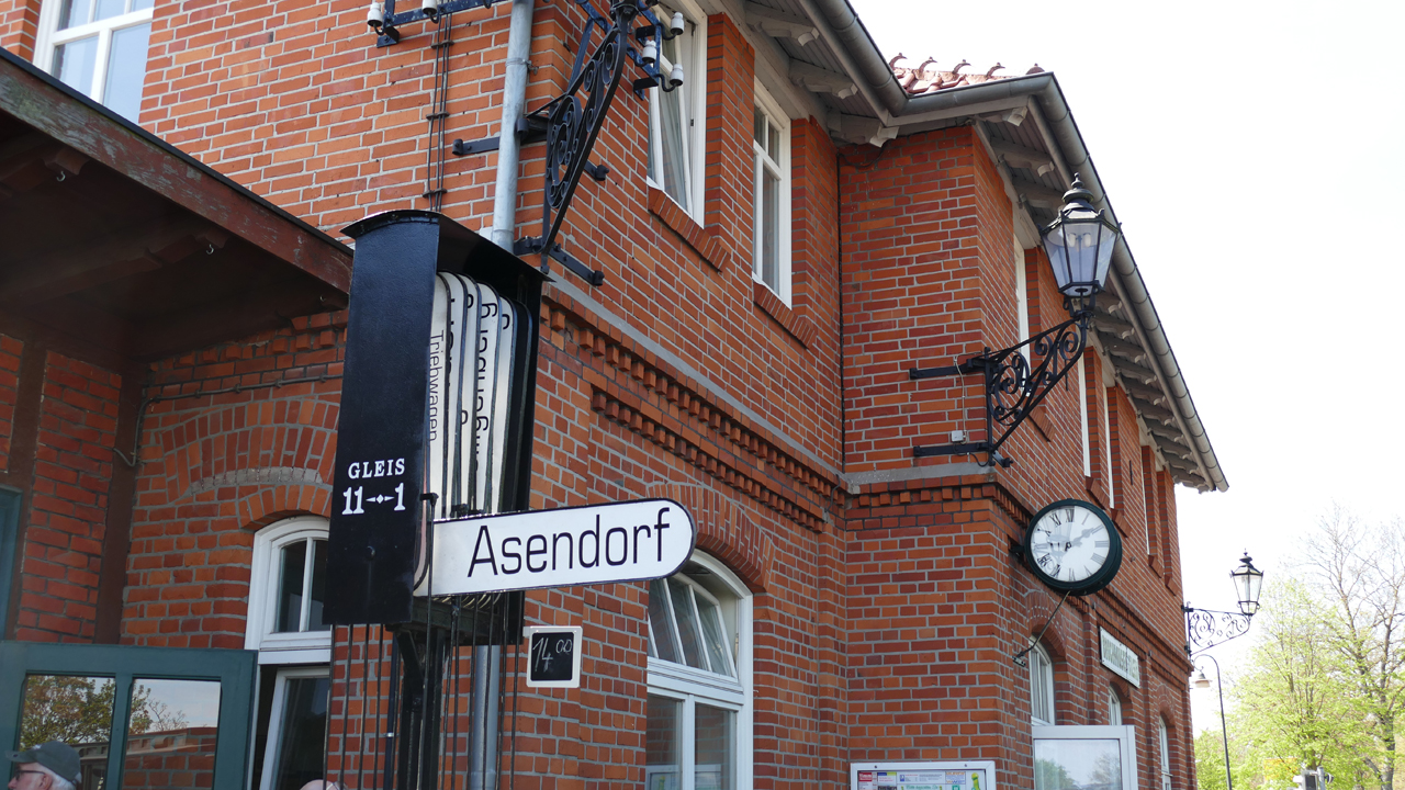 Und schon taucht auch wieder die Museums-Bahnstrecke mit dem Haltepunkt Vilsen-Ort auf. An Fahrtagen wird hier die 'gute' alte Zeit wieder belebt: Koffer werden mit Handkarren zum Zug befördert, Menschen in der passenden Kleidung stehen auf den Perrons, schauen dem Treiben zu, Waren werden verladen. Es herrscht ein reges Treiben und über allem wacht der beleibte Schaffner.