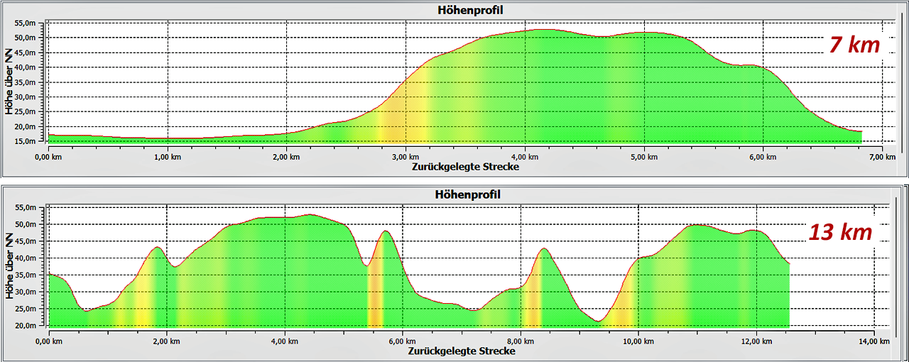 Aber heute ist zu, also weiter. Wir machen uns davon aus der Eiter-Niederung und streben den Höhen im Westen entgegen. Immer entlang des Retzer Baches über Kreisstraße und Bahnstrecke hinweg erreichen wir den Fuß der Geesthöhen.