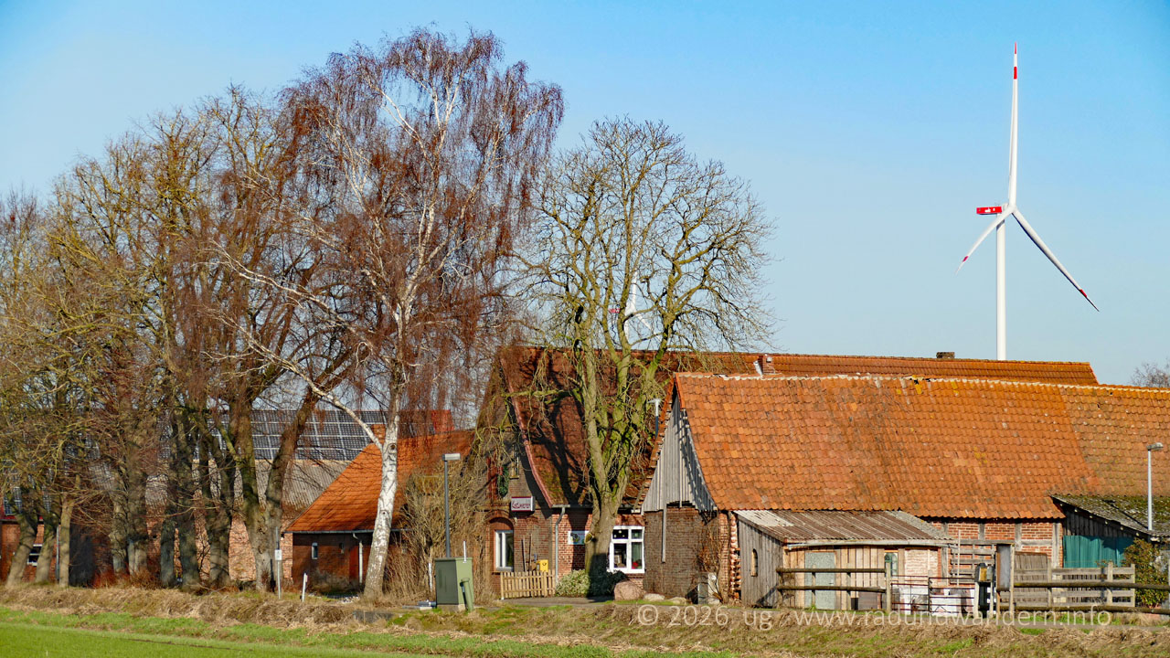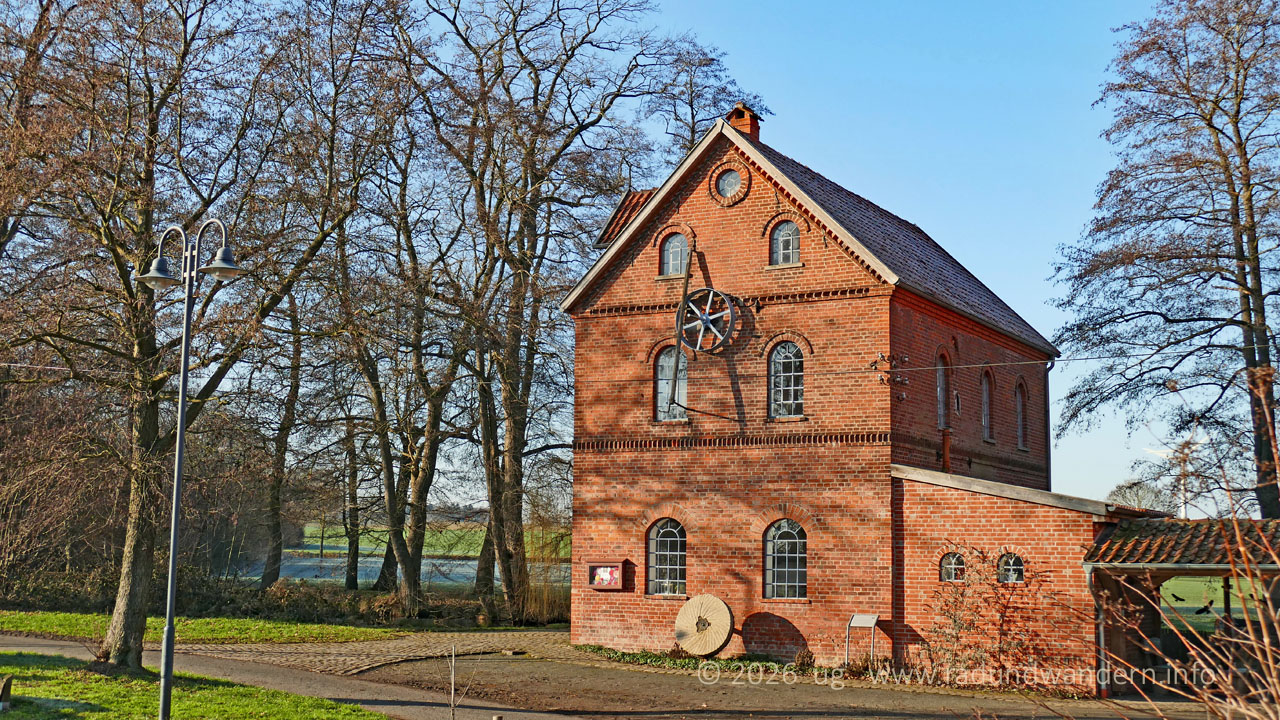 Die Schneemassen sind in der Fläche längst getaut. Nur in Senken und an schattigen Stellen liegt er noch, hart und festgefroren. Die Landschaft ist mit Raureif überzogen, als wir an diesem winterlichen Morgen an der Nolteschen Mühle zu unserer Wanderung rund um das Süstedter Holz aufbrechen. Stroh heißt unser erstes Etappenziel. Stroh? Das wollen wir hier nicht dreschen, sondern eine herrliche Wanderung zwischen Niederung und Geesthöhen vorstellen.