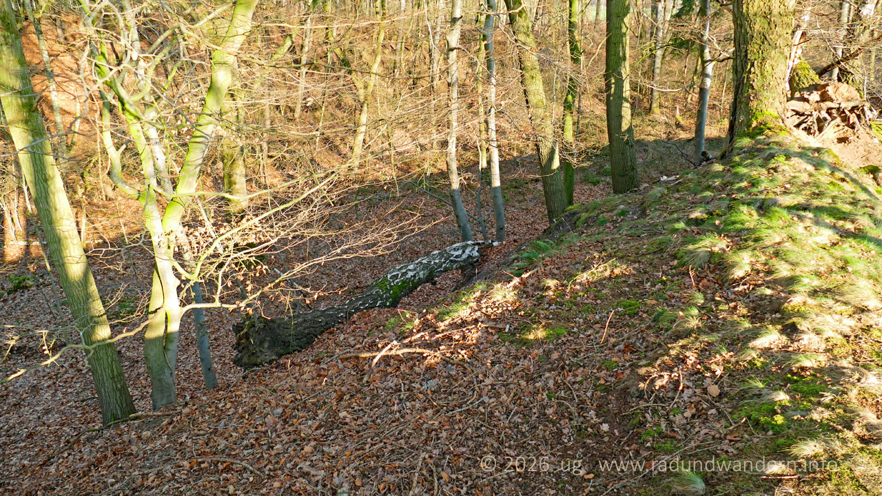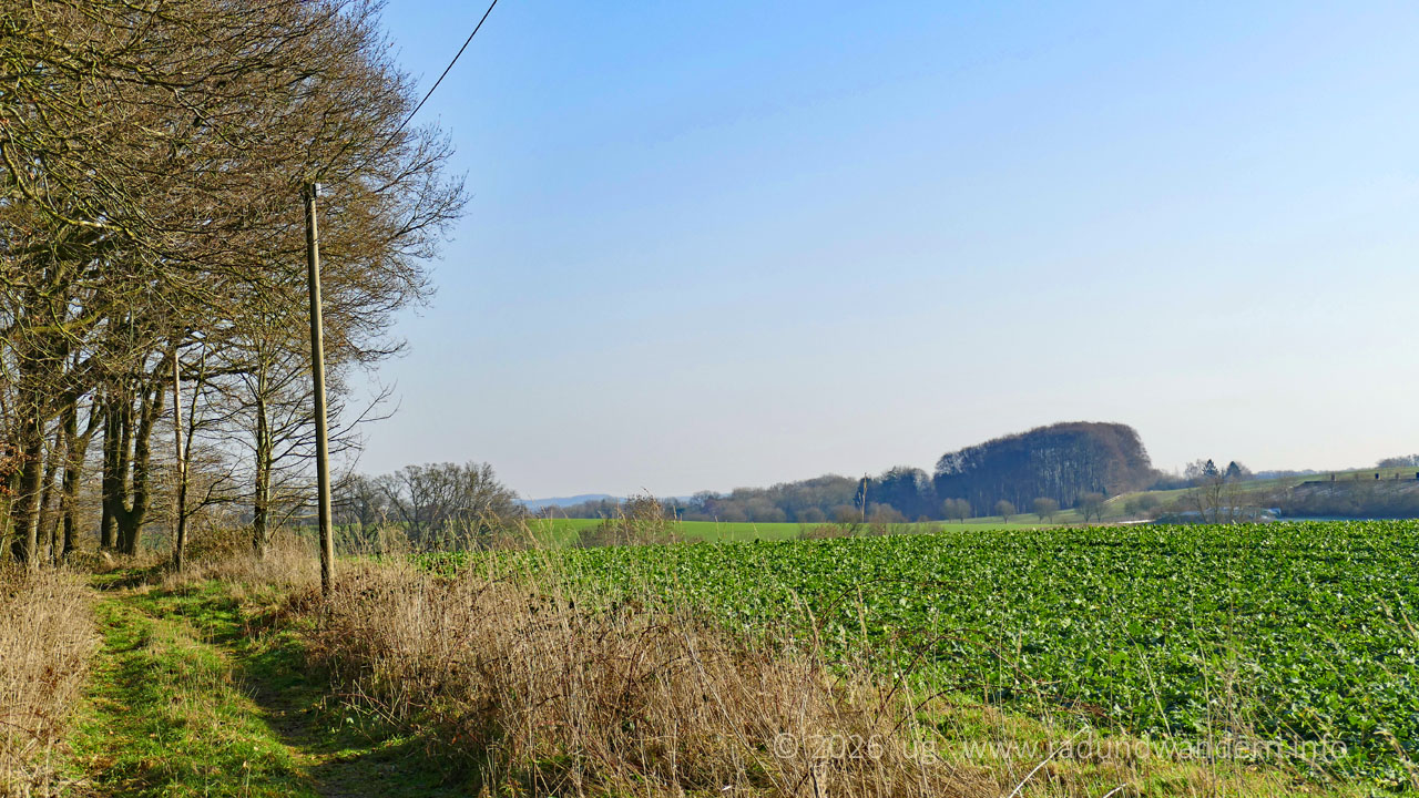 Der folgende Weg nach rechts ist seit längerem schon Sackgasse, einfach untergepflügt. Auf dem Ortsplan ist er noch verzeichnet. Also nehmen wir den nächsten Weg und laufen nun wieder bergab auf Süstedt zu. Es geht durch einen Hohlweg, dann folgt in einem Einschnitt die Gedenkstätte für die Süstedter, die in den Weltkriegen für fragwürdige Ziele ihr Leben lassen mussten. Erschreckend, wenn man sich die Mühe macht, die Daten auf den Kreuzen zu studieren. Die Jüngsten waren gerade mal 18 Jahre alt.