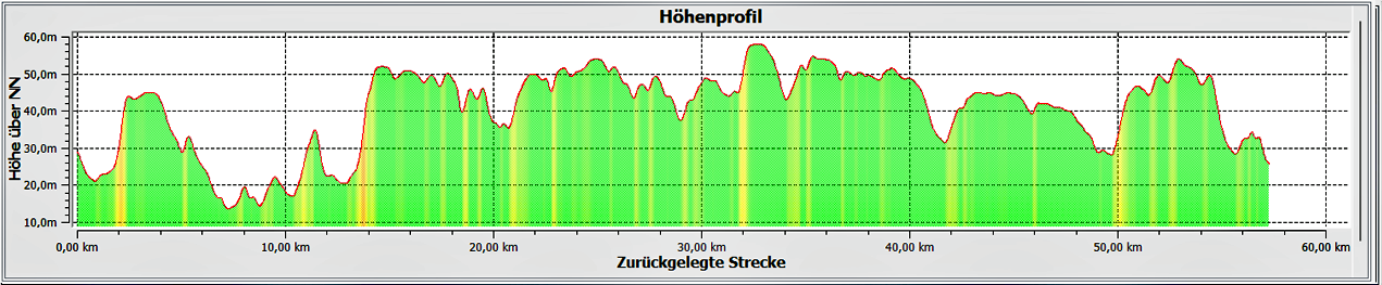 2:39 h, 57,8 km, 21,51 km/h, 250/230 m ↑ ↓