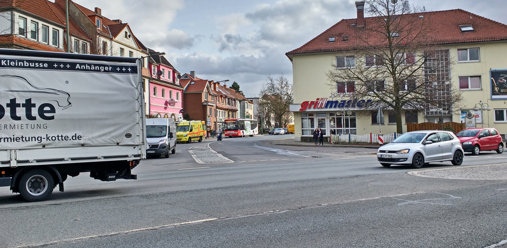 Stadt verweigert weiterhin eine Ampel (LSA) zur Querung der Hansastraße (B68) (foto © 2017 ug) Zur Karte geht's hier.