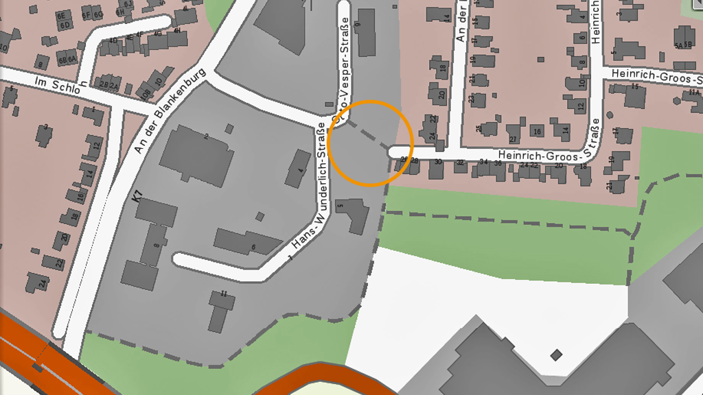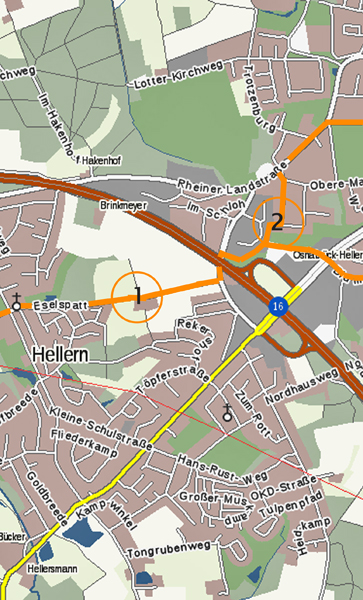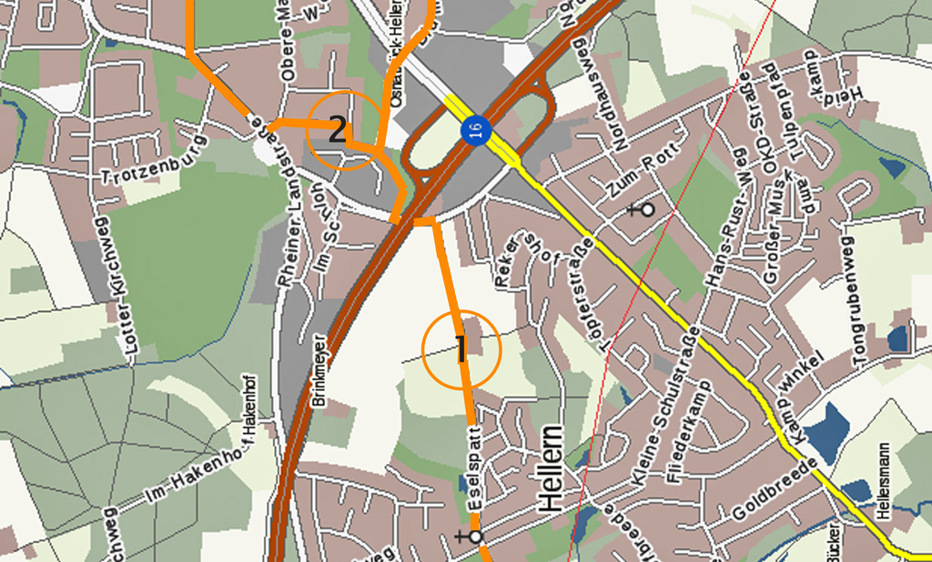 Wer von der Stadt kommt, nach Hellern will und dabei verkehrsreiche Straßen vermeiden will, nutzt oft die zum Radverkehrsnetz II gehörende Route über Heinrich-Groos-Straße und Eselspatt. Dabei trifft er/sie dann auf diesen Radverkehrs-Verhinderungs-Verhau und muss sich anschließend im Bordsteinkanten-Klettern üben. Das trifft ebenso alle Anwohner, die mal eben schnell zu Aldi oder Wellmann wollen.