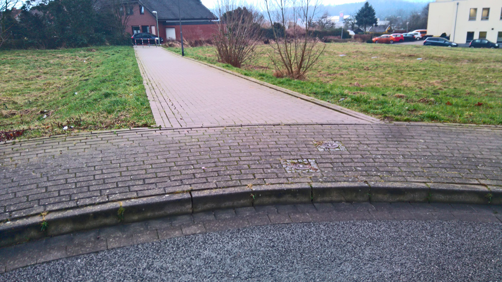 Es ist wirklich nicht zu verstehen, wieso diese Sperre so lange überdauern konnte. Die folgende Bordsteinkante beruht vermutlich schlicht auf einem Planungsfehler. Man hat einfach vergessen, hier eine Absenkung einzubauen. Also sollte hier schleunigst etwas getan werden, um diese Hindernisse zu beseitigen.