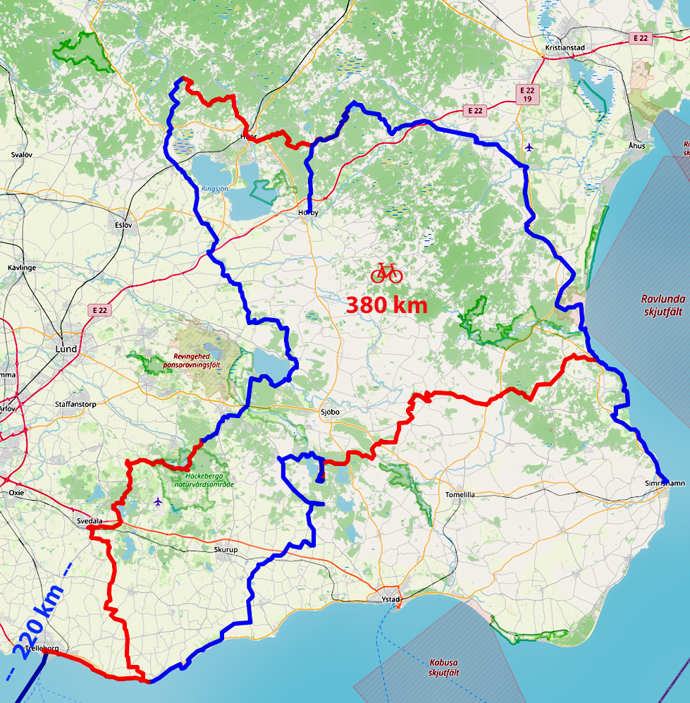 Trelleborg-Hörby-Simrishamn-Trelleborg : Fahrrad (364 km)