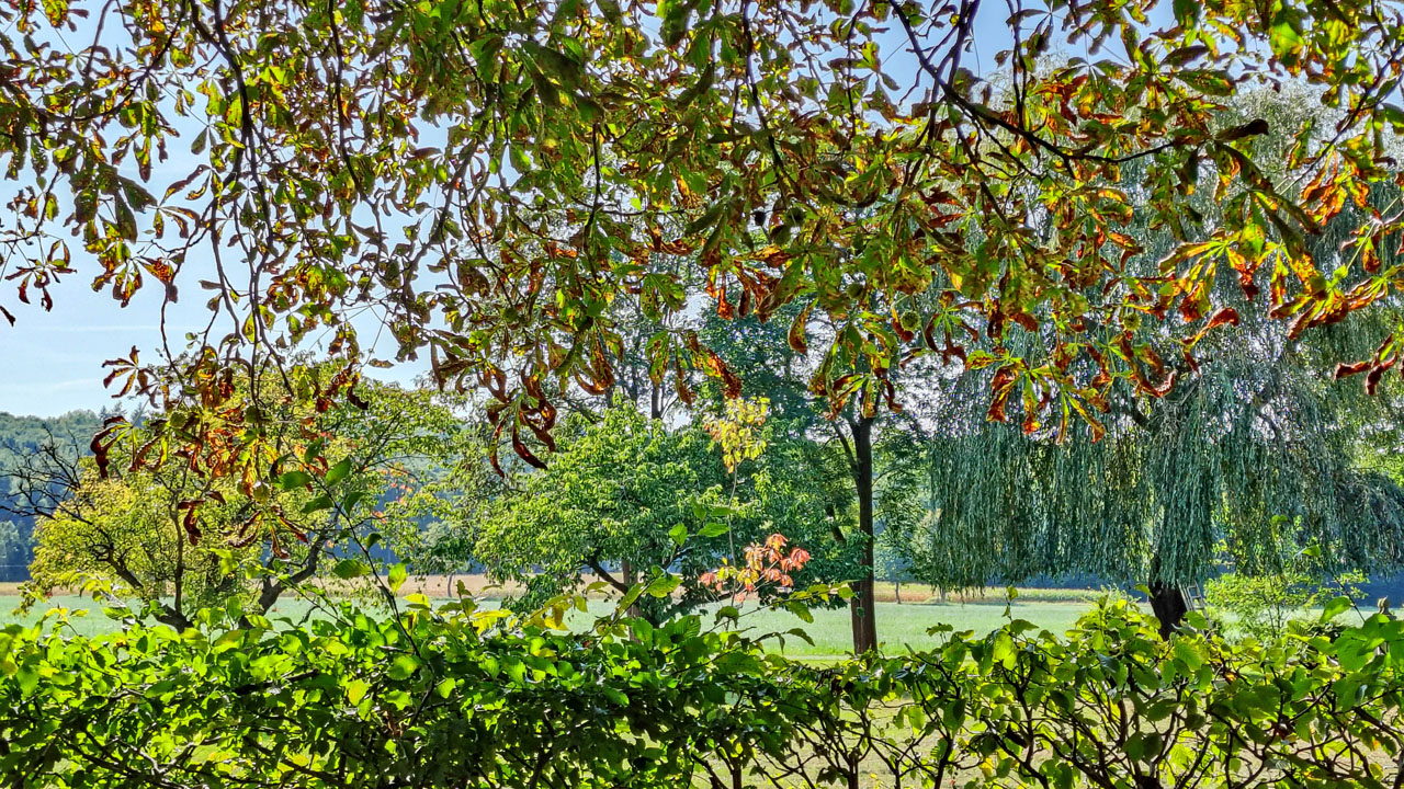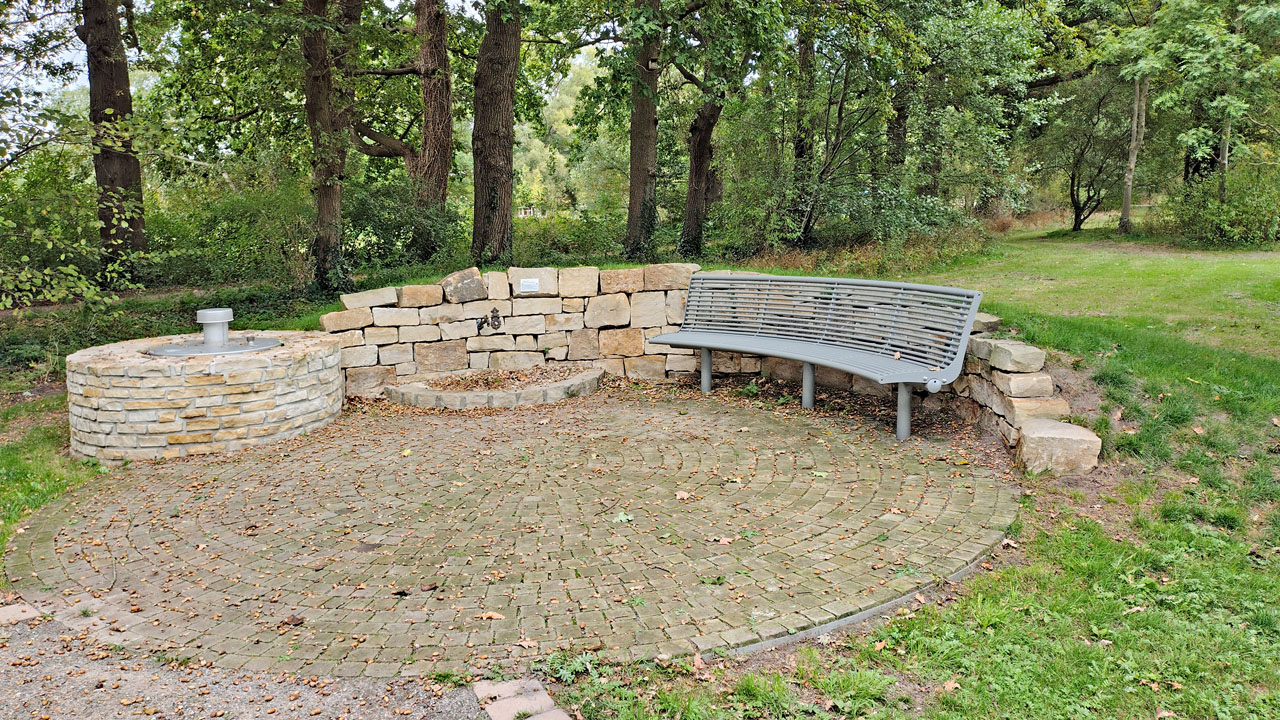 Über Niedermehnen fahren wir auf den Alten Postweg zu, die heutige Landesstraße 770. Sie führt ziemlich genau ostwärts bis zum Schaumburger Wald im weiteren Umland von Hannover. Wir queren die Straße und halten uns gleich darauf rechts auf ein Wäldchen zu. Dort verbirgt sich etwas, das man hier nicht vermuten würde. Es handelt sich um eine Schwefelquelle mit Kurpark und Badehaus. Ein regelmäßiger Kurbetrieb findet nicht mehr statt. Aber Mutige können an einem frei zugänglichen Hahn mal probieren, wie schwefelhatiges Wasser schmeckt. Ich habe es probiert, einfach abscheulich. Aber es ist ja auch nicht zum Trinken gedacht, sondern wurde für Wannenbäder genutzt.
