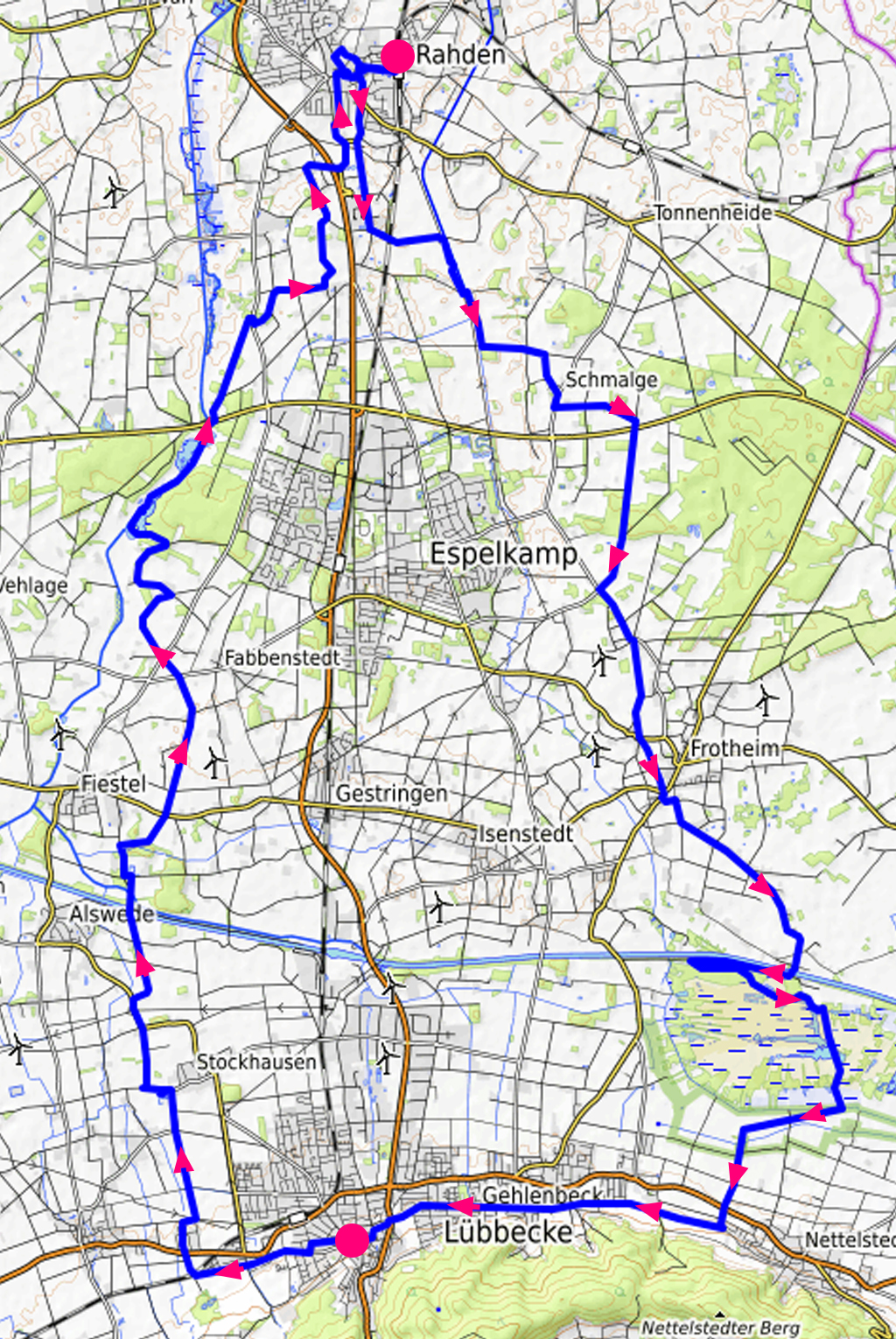 Vor dem WiehengebirgeVon Rahden nach LübbeckeZoombare Karte mit Tourenvorschlägen |