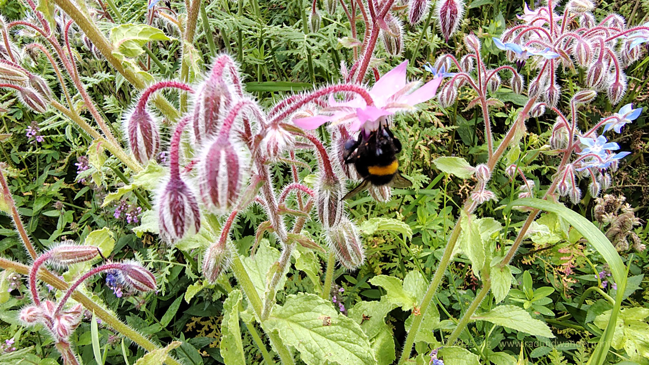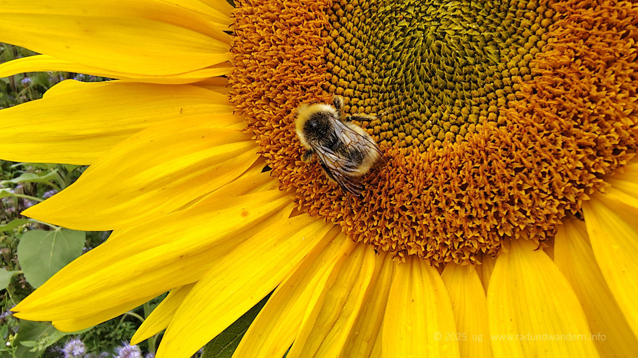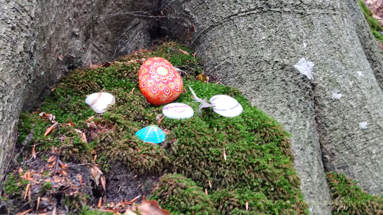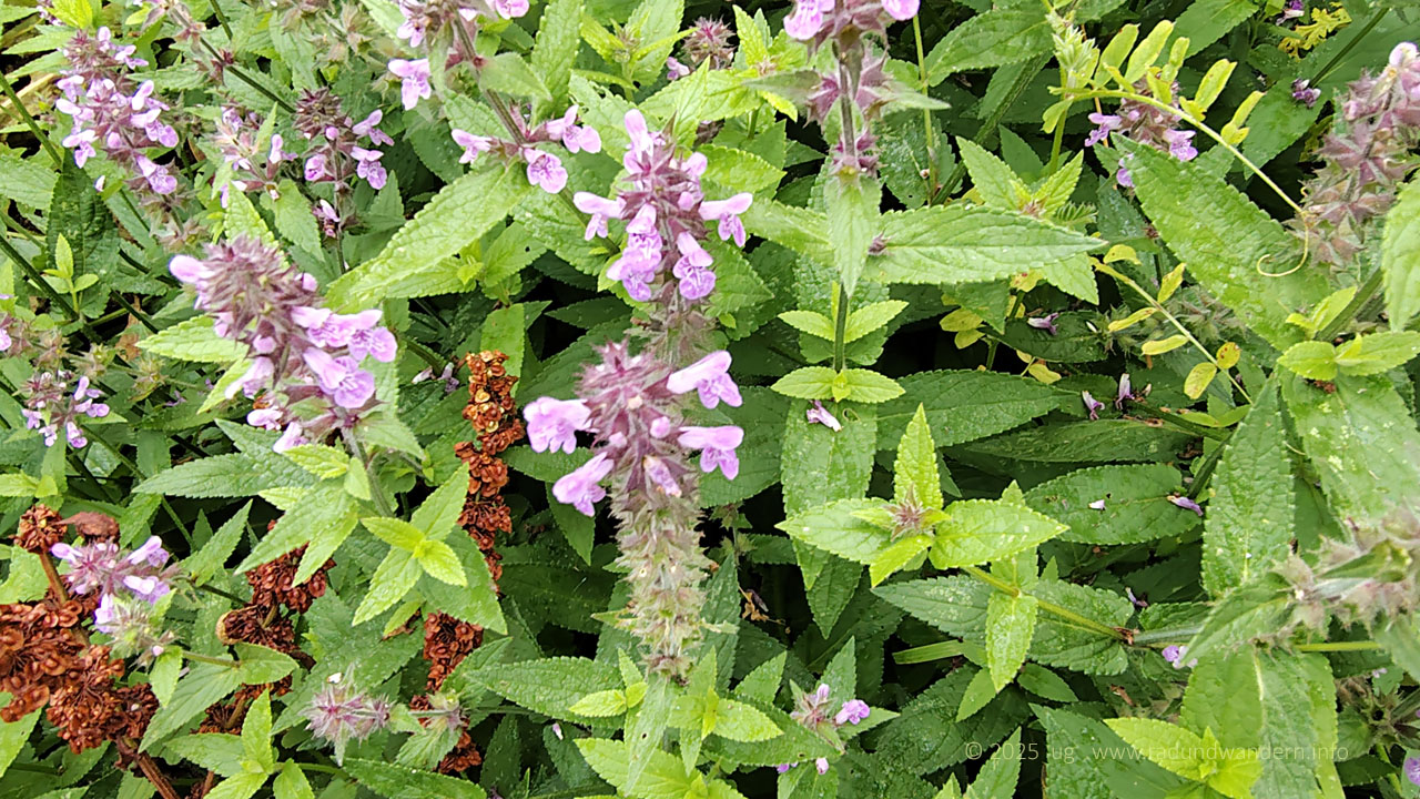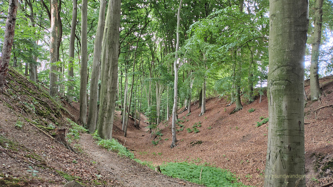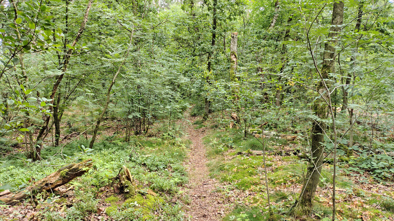 Wir waren schon einmal auf dieser Route unterwegs, und zwar im Januar 2024, die Bäume kahl, der Wind frisch und alle Wasserläufe bis oben hin gefüllt. Dieses Mal fahren wir das Kontrastprogramm, alles grün, laue Lüfte und Büsche voller Beeren. Die Route unterscheidet sich nur in zwei Punkten: Wir nehmen den Pfad durch das Rutental Richtung Affendorf und laufen von dort über Wöpse zurück. 2024 sind wir genau umgekehrt gegangen.