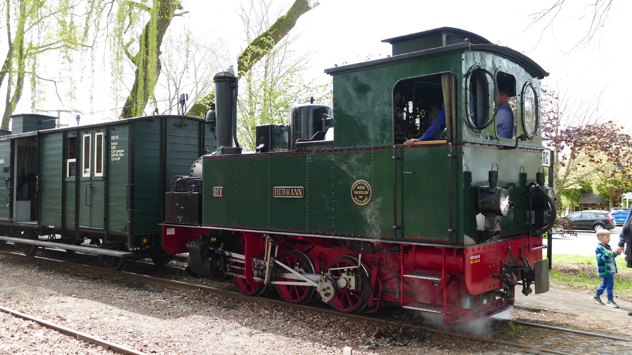 Und schon taucht auch wieder die Museums-Bahnstrecke mit dem Haltepunkt Vilsen-Ort auf. An Fahrtagen wird hier die 'gute' alte Zeit wieder belebt: Koffer werden mit Handkarren zum Zug befördert, Menschen in der passenden Kleidung stehen auf den Perrons, schauen dem Treiben zu, Waren werden verladen. Es herrscht ein reges Treiben und über allem wacht der beleibte Schaffner.