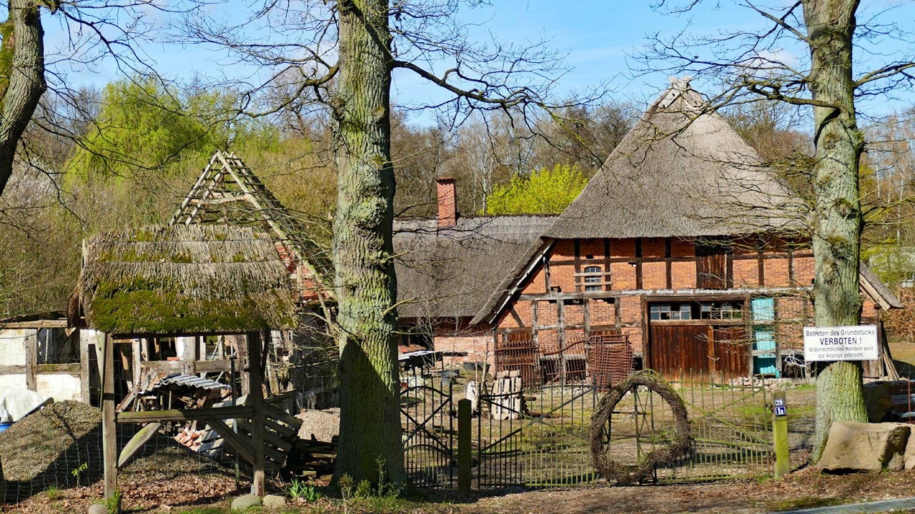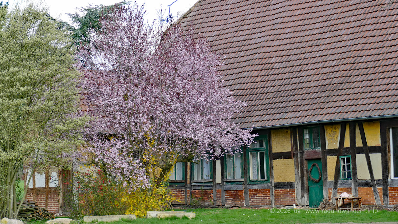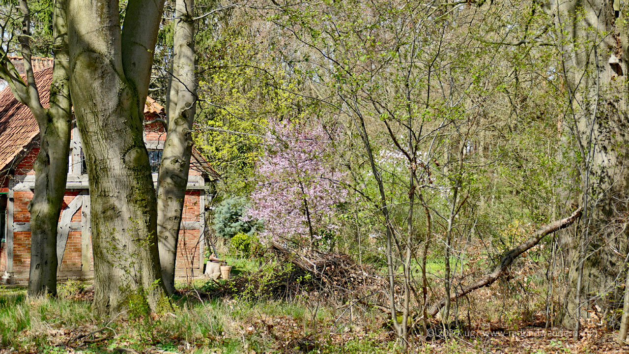 Startort dieser Frühlings-Wanderung ist Bad Blenhorst - einst ein Moorheilbad mit Hotel und Café, heute eher ein sehenswerter Lost Place. Mehlbergen am Geestrand zur Weser gelegen, ist Wendepunkt. Von hier bietet sich entweder ein Abstecher zur Marina an der Weser an mit Snackpoint oder zum Hofcafé Ahburs Schüne.