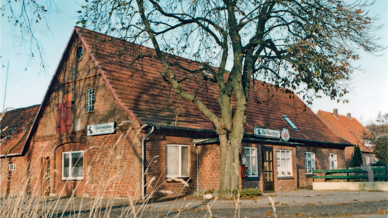 Unten im Ort angekommen queren wir die Bahnstrecke, die von Syke über Hoya nach Eystrup führt, und die nur noch gelegentlich befahren wird. Ursprünglich lag hier der Bahnhof. Die heutige Haltestelle befindet sich jetzt am anderen Ende des Ortes zusammen mit der Bushaltestelle. Wer mag, kann noch ein Schlenker nach rechts machen, wieder über die Bahn hinweg, in die Schmiedestraße. Hier können wir noch einen Blick auf die ehemalige Schmiede werfen, bevor es zurück zur Nolteschen Mühle oder zur Bushaltestelle geht.