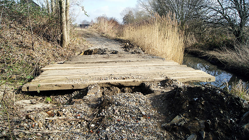 Ach ja, die Brücken-Rutschbahnen bei Regen sollte man an dieser Stelle auch nicht vergessen, sind sie doch eine nette Abwechslung in Radfahrers Alltags-Einerlei. Die Beschleunigung muss man erlebt haben, wenn man nichts ahnend vom Sattel auf die Bretter befördert wird. "Schön ist auch die Abschussrampe auf der kleinen Hasebrücke von Lüstringen hinüber in die Düstruper Bauernschaft": Inzwischen Vergangenheit. Die Brücke wurde 2014 komplett erneuert.