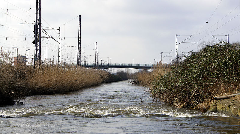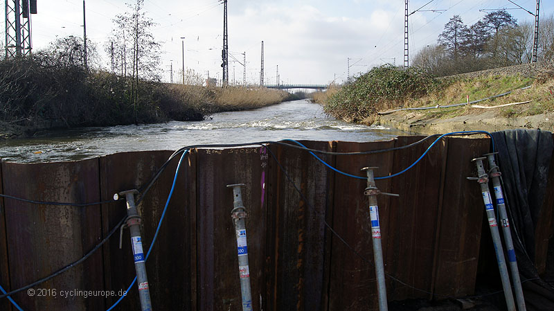 Das Hase-Hochwasser war abgelaufen, die Trogstrecke trocken, die Ampel aus. Doch leider war die Unterführung kurz vor der Schellenbergbrücke weiterhin überflutet und nicht passierbar.