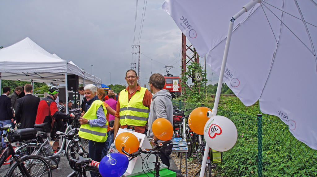 Dennoch ist er dem OB anscheinend nicht fein genug. Nicht mit einem Wort hat er ihn erwähnt. Dafür hat man den ADFC dann auch im Regen stehen lassen, im Gegensatz zum Bürgerverein Schinkel, der sich fein unter einem Pavillon präsentieren durfte.