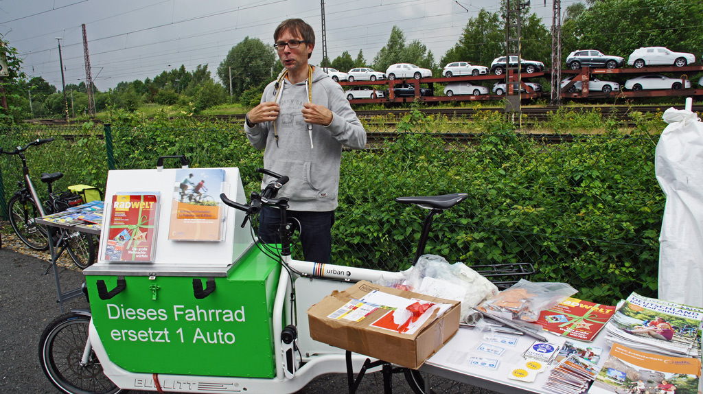 Mobiler Infstand des ADFC (von links: Eva Westerhaus, Holger Vogt und Uwe Schmidt)