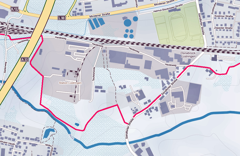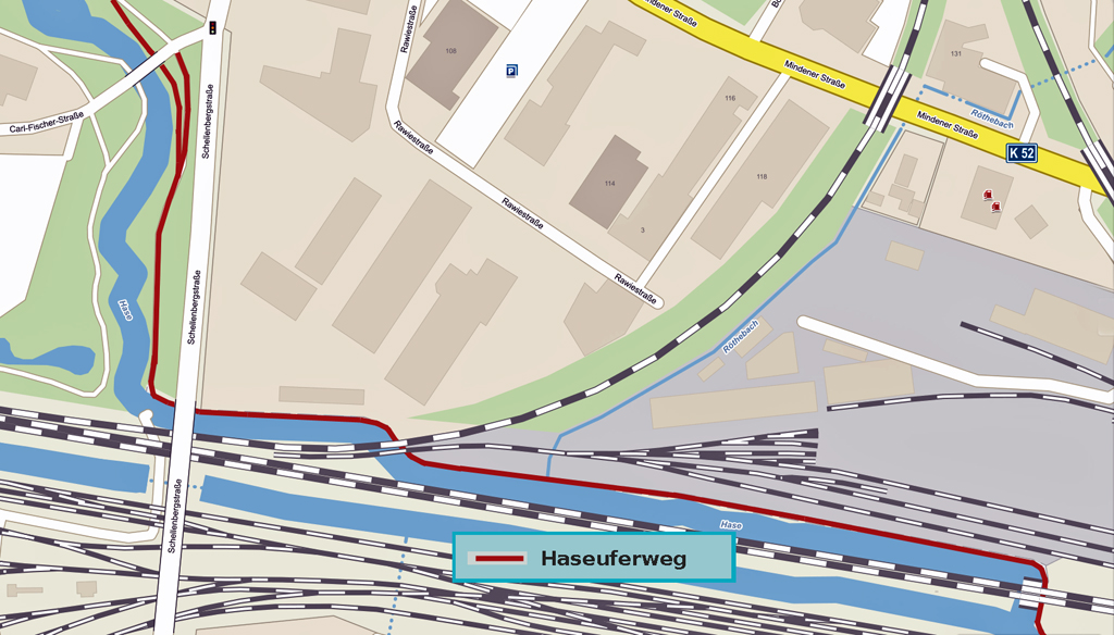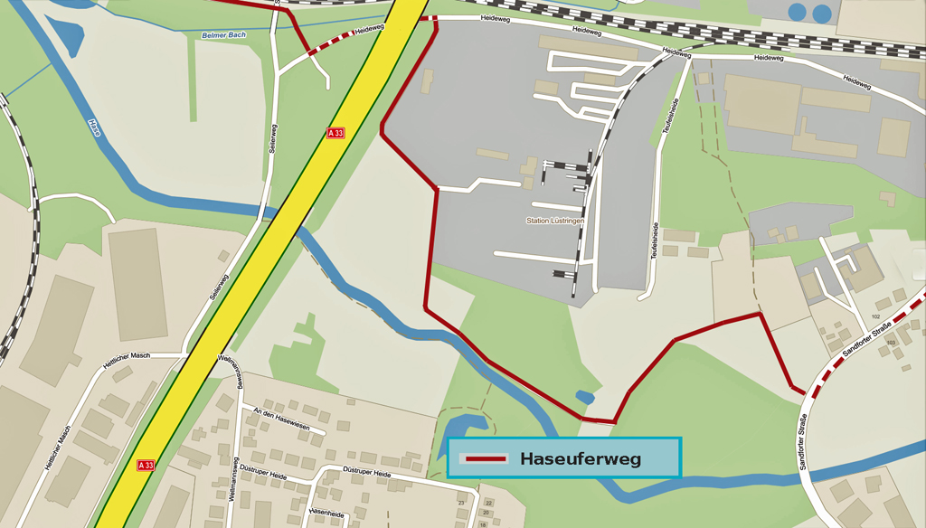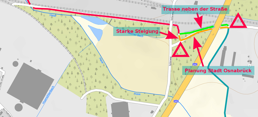 Wegeführung Hasepark - Trogstrecke