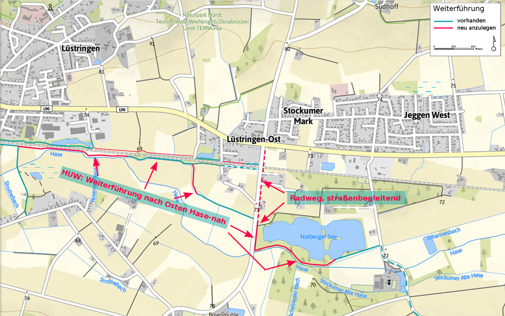 Die landschaftlich schönere, harmonischere und flussnähere Führung zwischen Hase und Natberger See fällt wohl dem Schutz der Natur zum Opfer. Nicht ganz glücklich über die sich abzeichnende Routenführung muss man allerdings zugestehen, dass dadurch ein bisher zusammenhängendes Gebiet als solches erhalten bleibt. Ein positiver Nebeneffekt der jetzt geplanten Route wird sein, dass die Menschen, die längs der Mindener Straße siedeln, einen sicheren Weg zur Arbeit, zum Einkaufen oder zum Spazierengehen und -fahren bekommen.