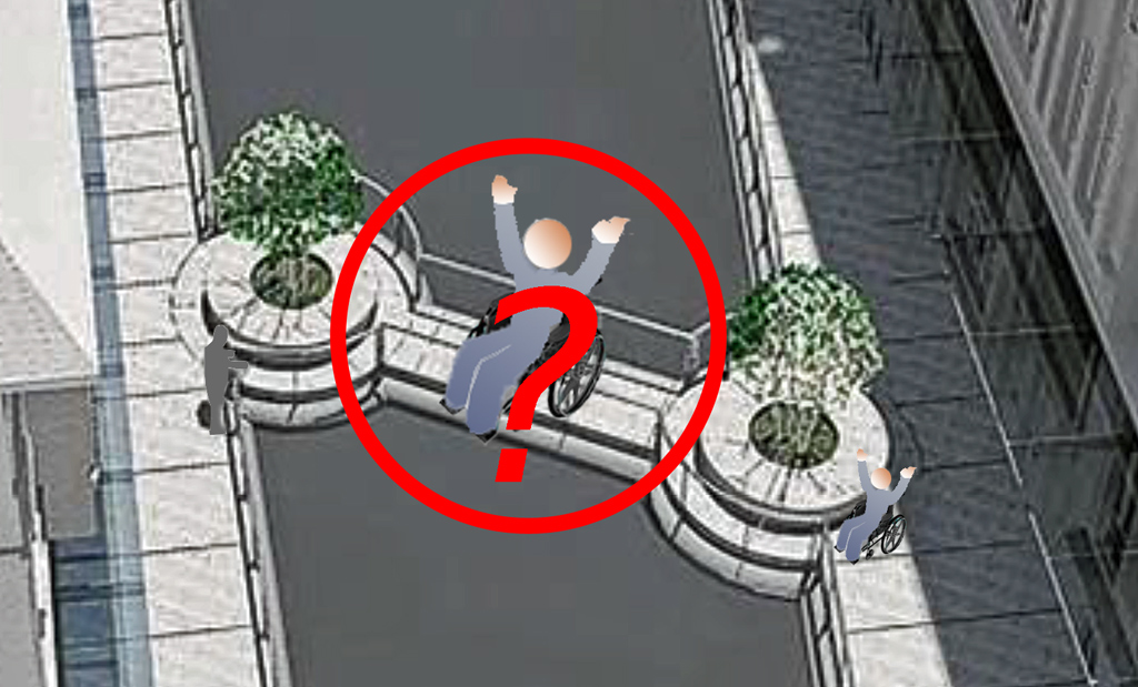 Nach bisheriger Planung der Stadt Osnabrück wird auf dem ostseitigen Ende der Zuwegung zum Trog eine sehr gravierende Gefahrenstelle geschaffen. |